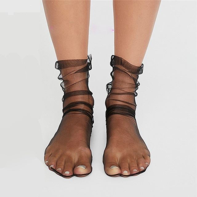 Velmi módní nepružné silonové ponožky v černé barevné variantě. Univerzální velikost, horní část ponožky je volná a bez lemu. Skvěle se hodí k teniskám i do lodiček. Celková délka ponožky je 50 cm.
